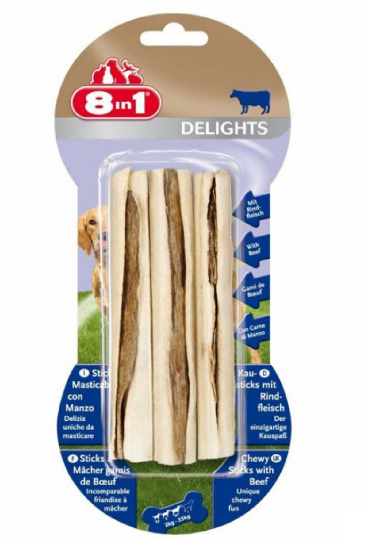 8in1 Delights Sticks Biftekli Çubuk Köpek Ödül Maması 75gr Kullanım Talimatı