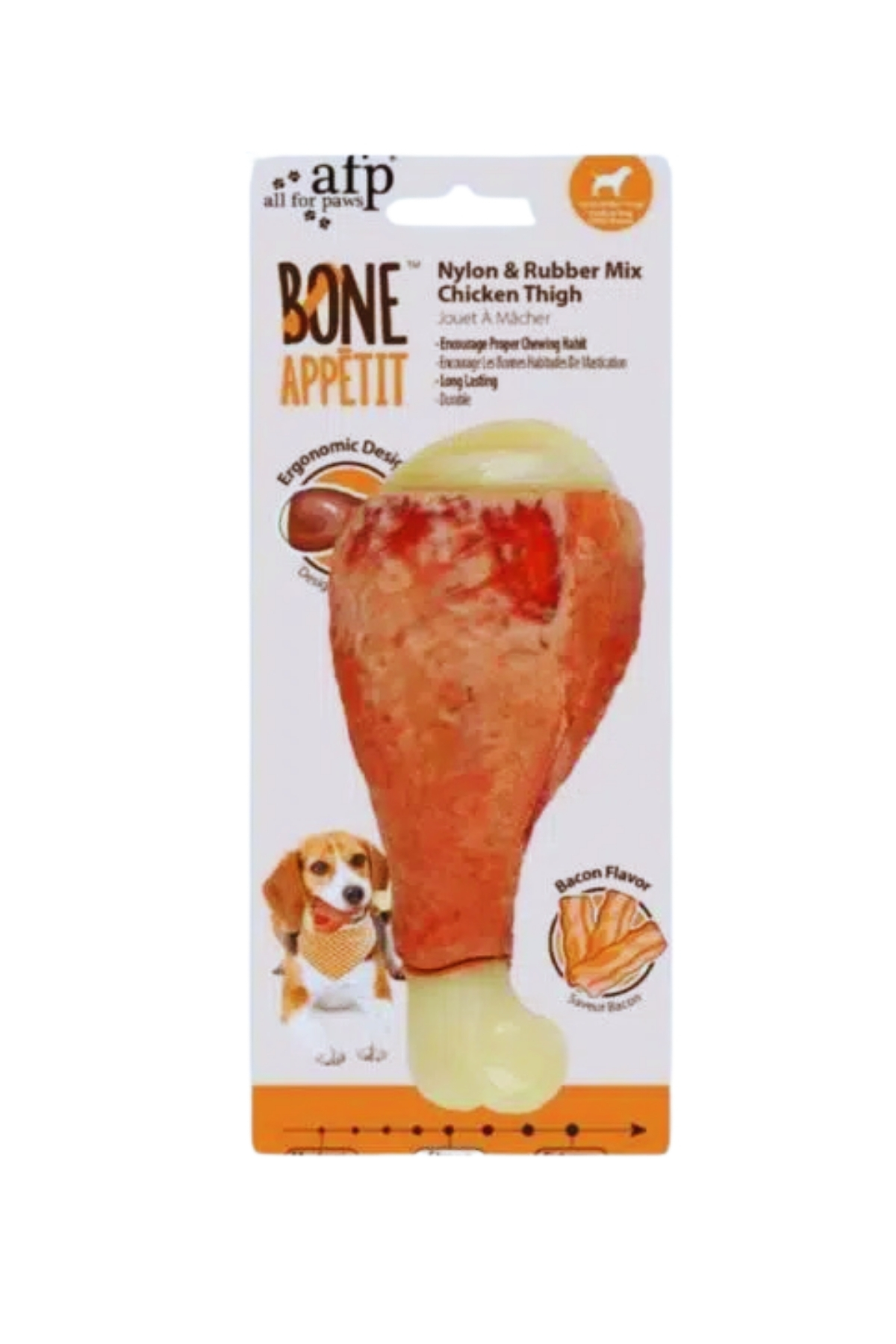 Köpeklerin doğal kemirme içgüdülerini tatmin etmek, hem fiziksel hem de zihinsel sağlıkları için büyük önem taşır. AFP (All For Paws) tarafından özel olarak tasarlanan bu ürün, gerçek bir tavuk budu formunda olup, köpeklerin asla hayır diyemeyeceği pastırma (bacon) aromasıyla zenginleştirilmiştir. petdoys.com güvencesiyle sunduğumuz bu dayanıklı çiğneme oyuncağı, köpeğinizin ilgisini sürekli canlı tutarak mobilya veya ayakkabı gibi eşyaları kemirmesini engellemeye yardımcı olur.