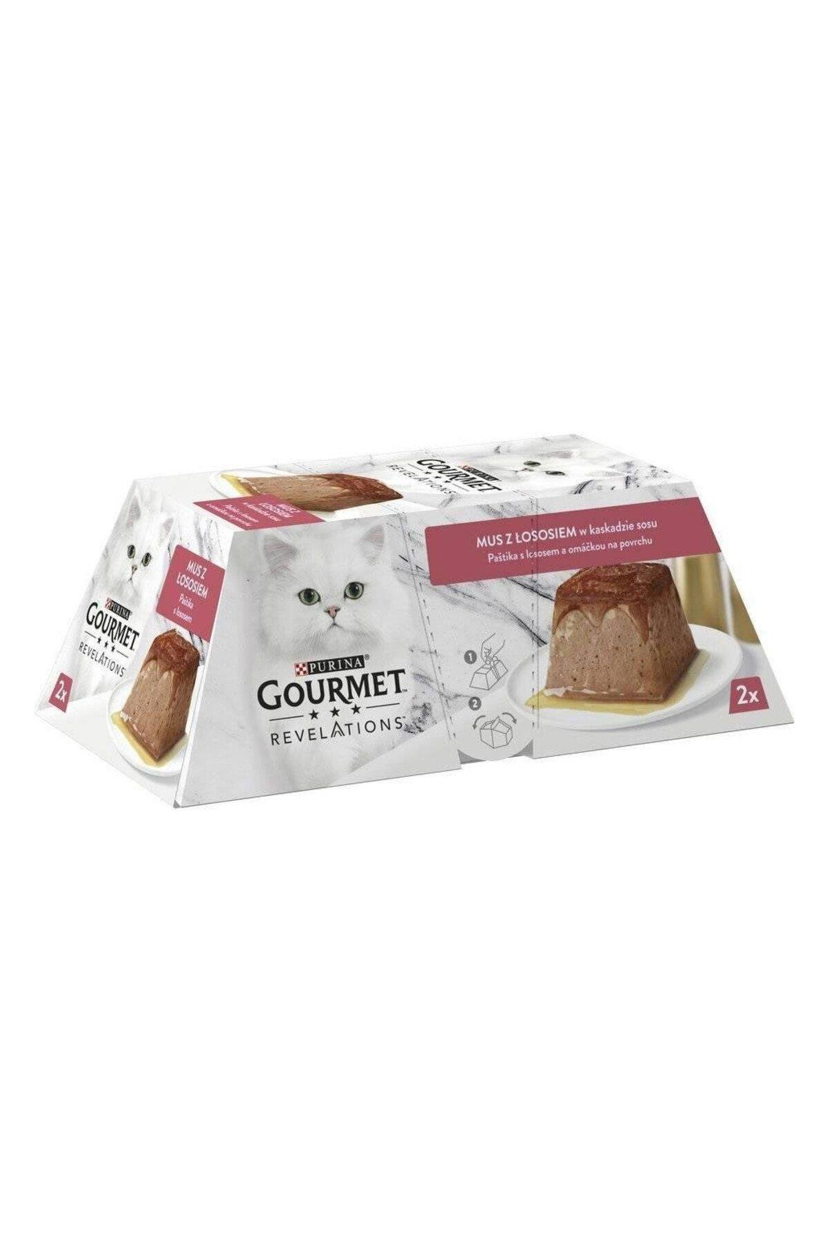 Gourmet Revelations Somonlu Kedi Konservesi 2x57gr, soslu mousse formunda, yetişkin kediler için dengeli ve doğal içerikli bir yaş mamadır. Kaliteli somon eti ve vitamin-mineral desteği ile kedinizin hem iştahını hem sağlığını destekler.