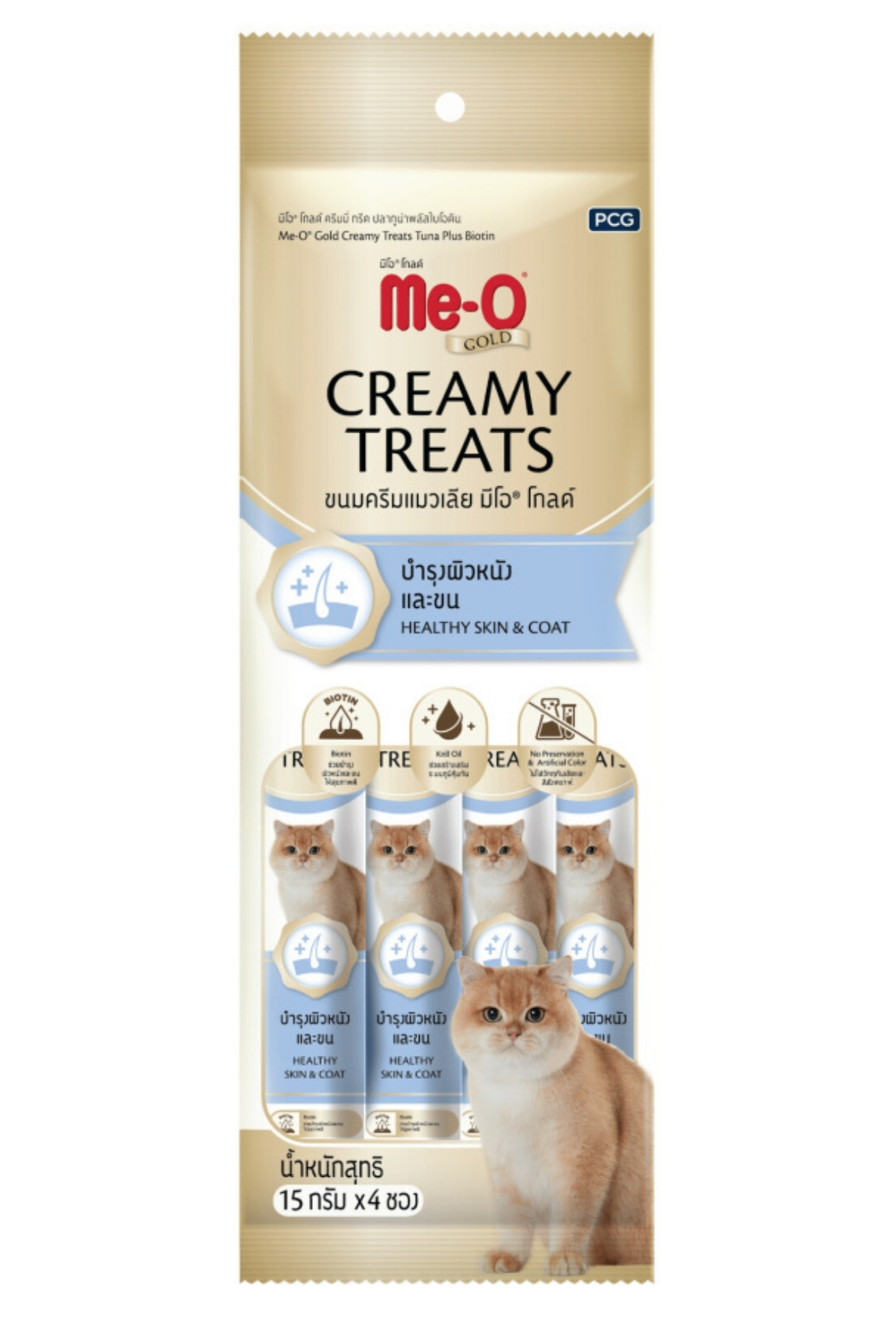 Me-O Gold Ton Balıklı ve Biyotin Destekli Krema Kedi Ödülü 4X15 Gram