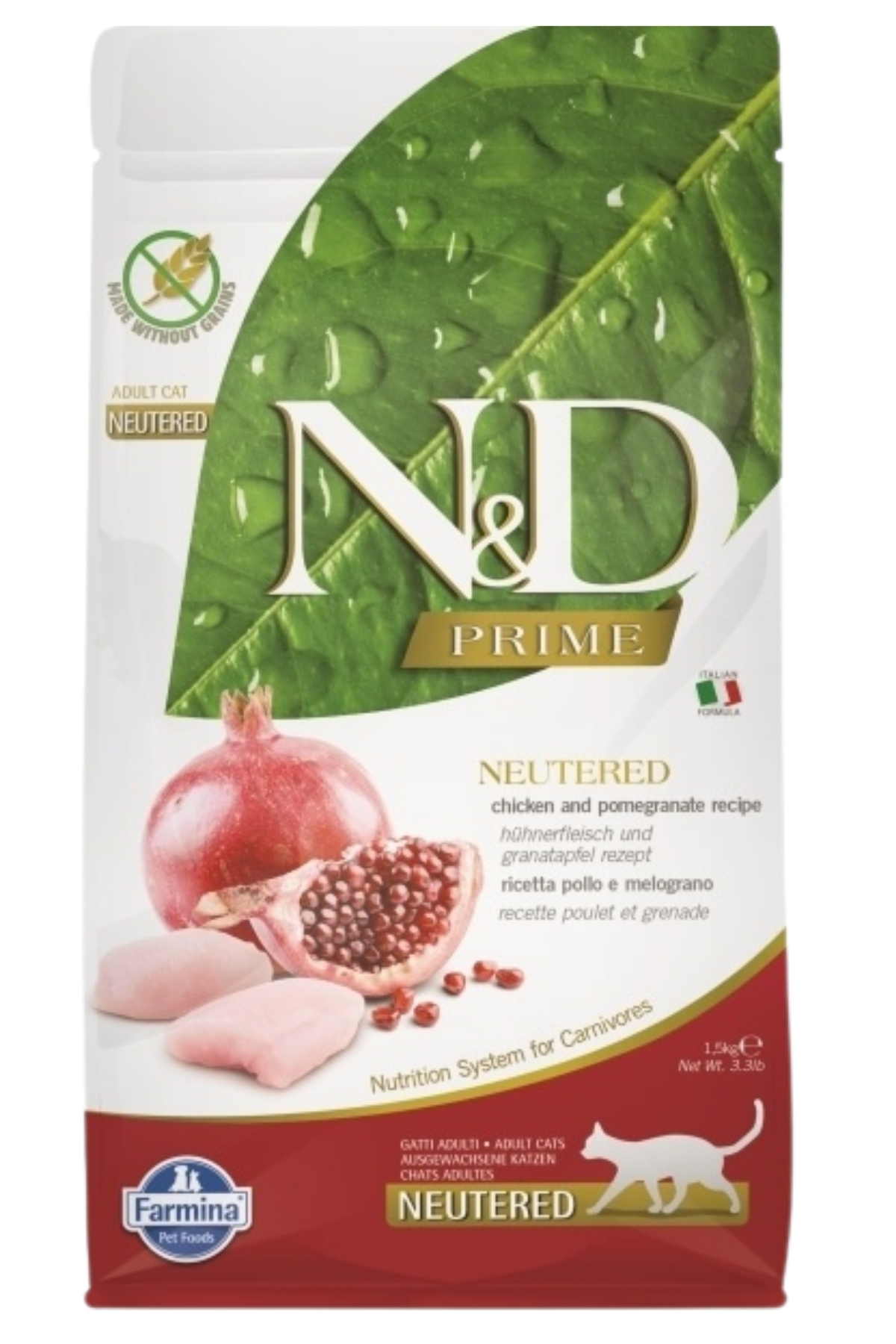 ND Prime Tahılsız Tavuk Ve Narlı Kısırlaştırılmış Kedi Maması 1,5 Kg