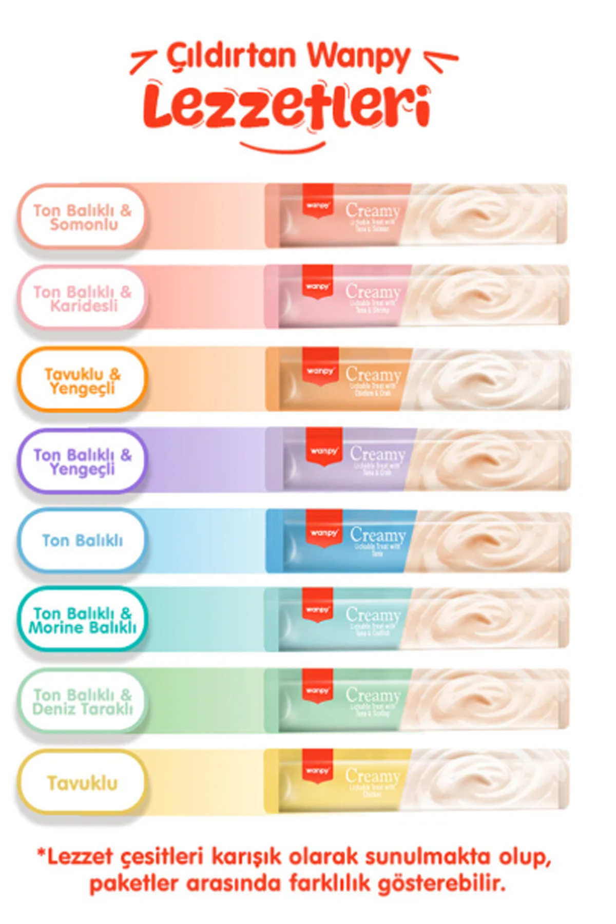 Wanpy Creamy Cat Treat Karışık Krema Sıvı Kedi Ödül Maması 45 Adet X 14 Gram